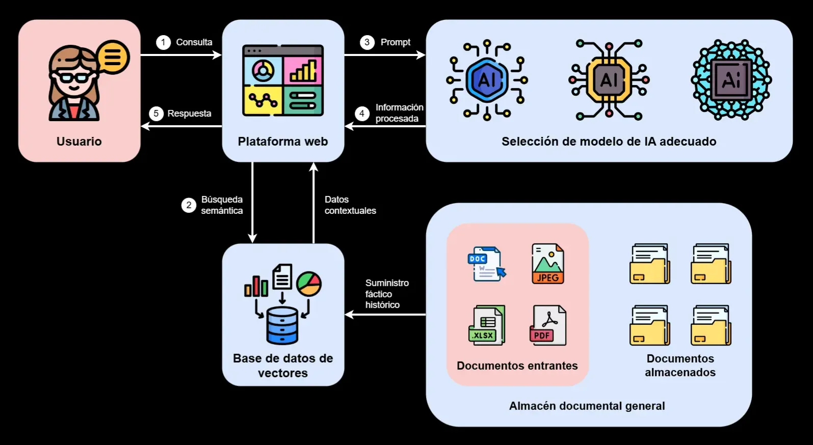 Empresas con grandes volúmenes de documentos pierden horas buscando información. Con RAG empresarial, tu equipo puede consultar cualquier documento en lenguaje natural.